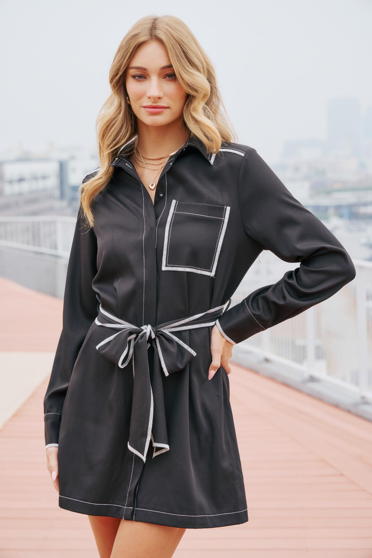 Be the first to review “Belted Shirt Mini Dress Long Sleeve Contrast Stitch”